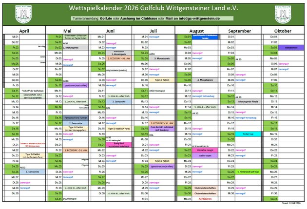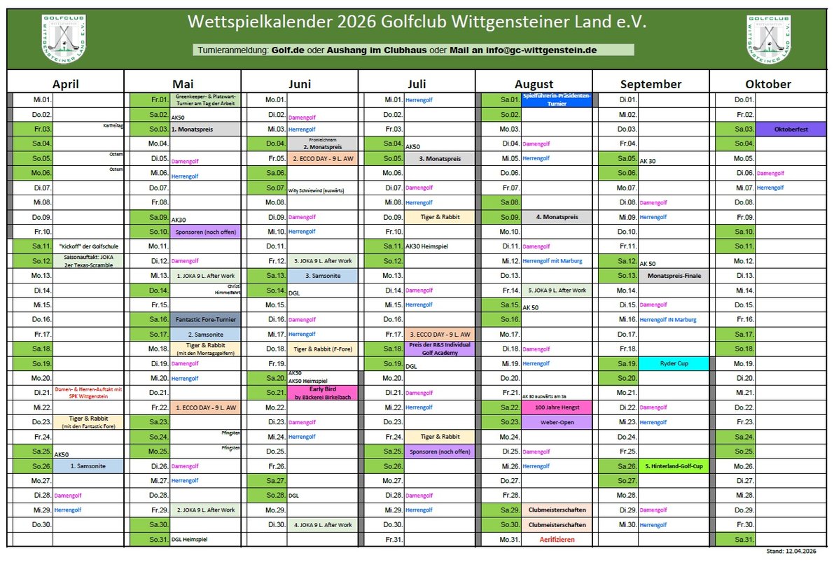 Turnierkalender 2026 (Änderungen vorbehalten)