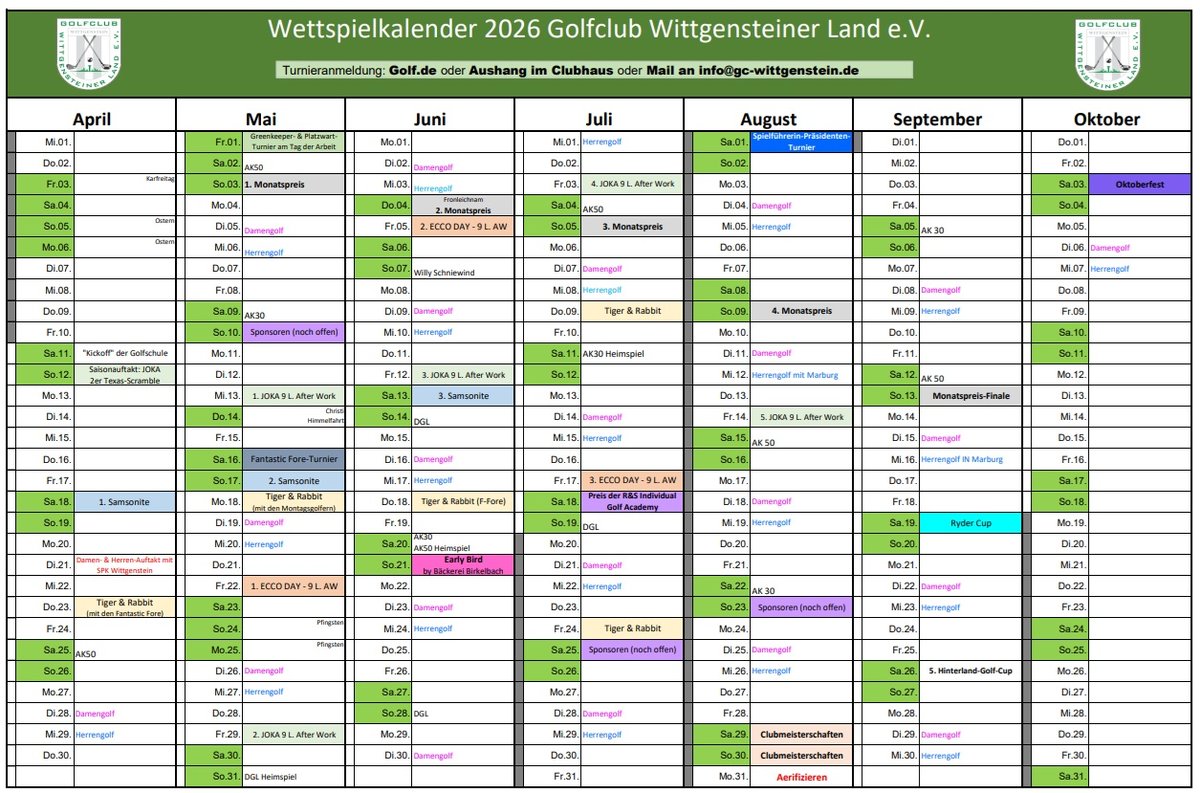 Außerdem findet der 5. Hinterland-Golf-Cup am 26.9. auf unserer Anlage statt.