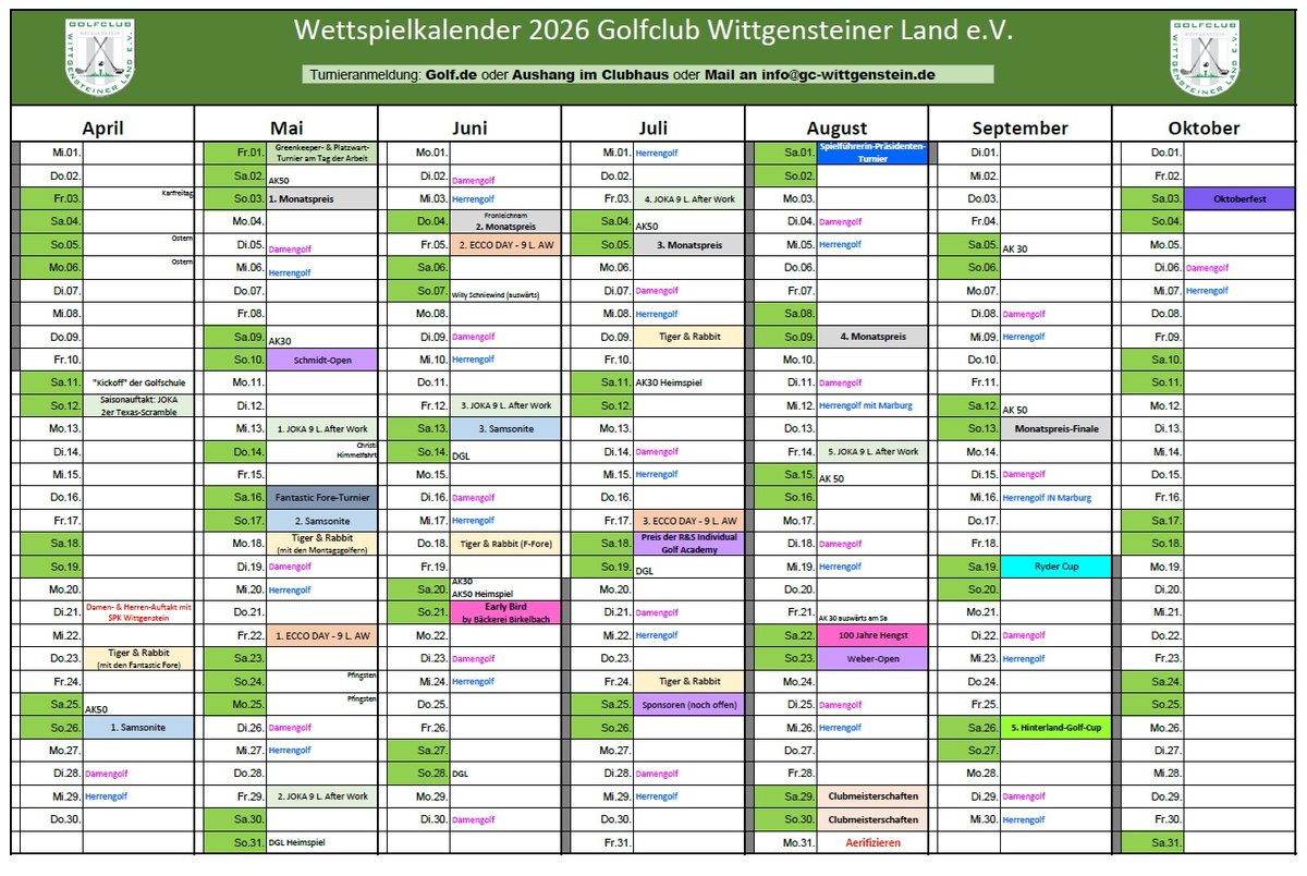Turnierkalender 2026 (Änderungen vorbehalten)